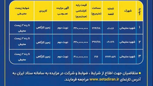 آگهی مزایده عمومی ( شهرک شهید سلیمانی )